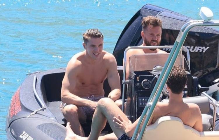 27岁的约克雷斯被拍到在希腊米科诺斯岛沐浴阳光,穿着条纹泳裤,戴着太阳镜,身处私人游艇上。约克雷斯与一群朋友在一起,看起来兴致高昂。